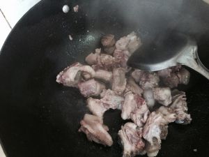 放入大葱段八角桂皮鹅肉一起翻炒,加入适量料酒,家里没有料酒的朋友可以用白酒代替