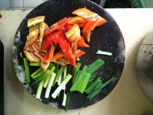 配料都准备好,蒜白和蒜叶分开。这蒜苗是自己种的,所以小点儿