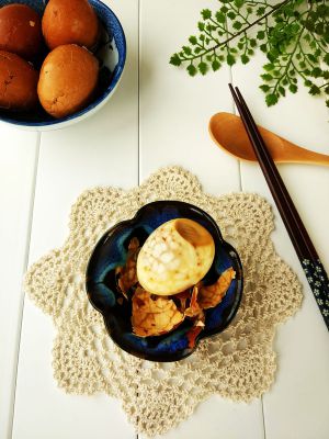 出锅后,拨开来,出现美丽的花纹。要向更入味,可在汤里浸泡一段时间。