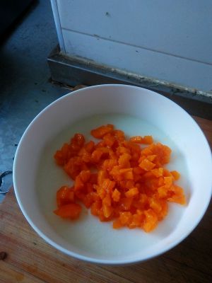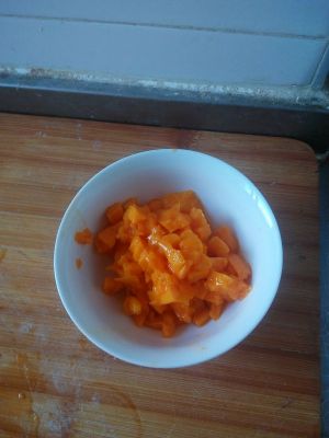 盖好保鲜膜,上锅小火蒸,15~20分钟左右。期间可将芒果切粒