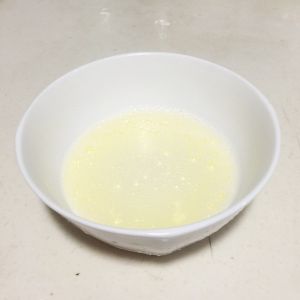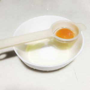 打一个鸡蛋,将蛋清小心剔出,蛋黄弃之不用;两勺白糖加入蛋清,搅拌均匀,静置;