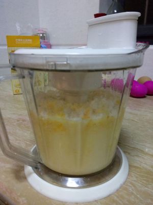 开始用料理机搅拌三分钟左右。用打蛋器也可以,但是要十分钟左右。