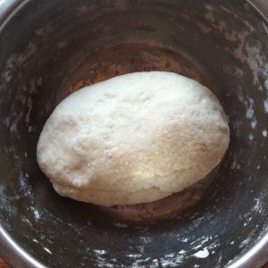 加好水后,用手把面粉和成面团,揉匀,醒发一会儿。