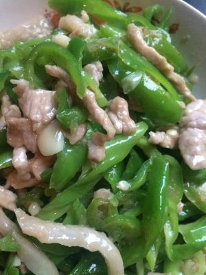 热油下肉丝炒,加点糖,炒香,加青椒,爆炒两分钟调味即可出锅!