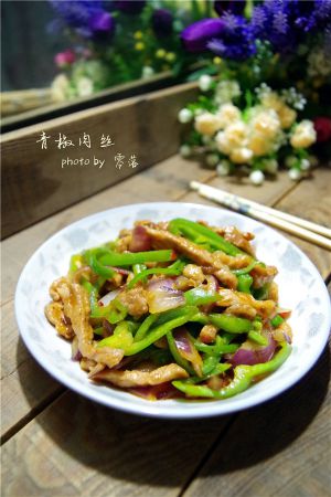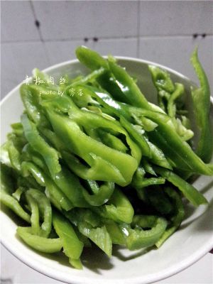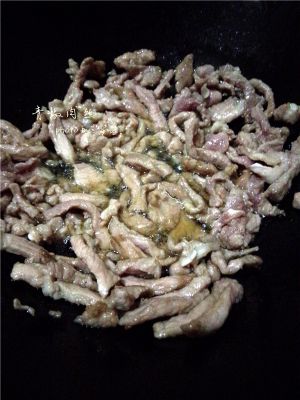 猪瘦肉洗净,切成粗一点的肉丝;猪肉用适量盐、料酒、淀粉水(淀粉+清水)、生抽、抓匀;入锅之前再调入适量植物油拌匀;