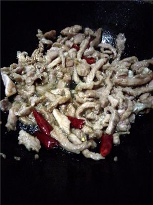 炒锅置火上,倒入适量植物油烧热;放入肉丝大火翻炒;