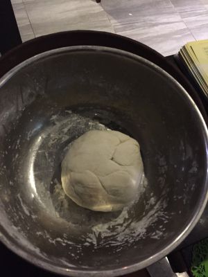 这一步骤没有拍照,就叙述一下好了,很简单 把准备好的面粉,加点盐,然后加水,揉成面团,这里不需要用到酵母啊泡打粉什么的,就把面粉揉成面团就好了,揉面团大家都会的吧,然后盖上保鲜膜,自然常温发酵一小时,直到面团发到一倍大,表面光滑,就可以了,然后把面团揉一揉,把里面的空气揉掉,这里在揉面的时候可以在垫板上撒一些面粉,以免粘,但不要太多