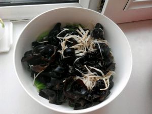 时蔬金针菇木耳罩水,放入大碗中备用。