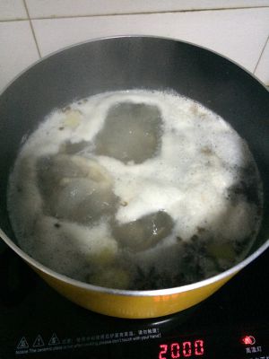 准备好葱姜蒜花椒大料冷水入锅煮10-15分钟,可以再加着料酒和盐。