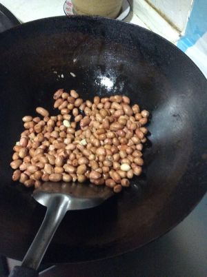 锅内放入辣椒酱,炒岀红油,放入鸡丁,放入青椒翻炒均匀,调味,放入少许盐,味精放入花生仁,装盘。/