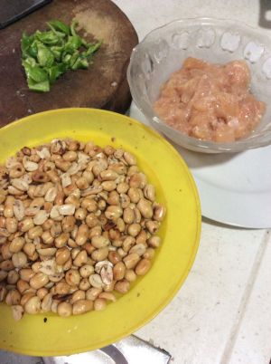 买的现成的拌好的宫爆鸡丁,回家炒熟就行,待用