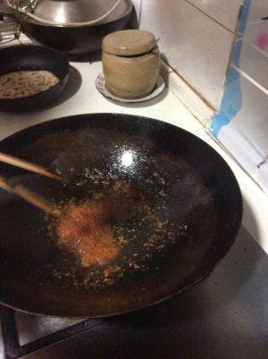 热锅加油加入干辣椒,花椒,姜片,蒜片煸炒爆香(爆香后可以将辣椒花椒姜蒜捞出),然后加入半勺豆瓣酱炒出红油,加入刚才调好的酱汁翻炒