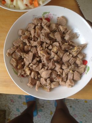 锅中热油炒鸡丁 六七分熟即可 我炒的有点儿老了