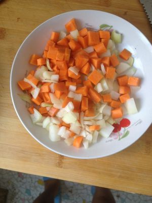 先将胡萝卜,圆葱切小块备好
