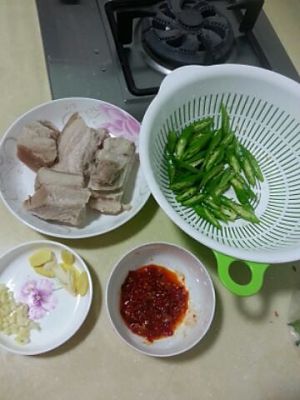 准备好食材,五花肉要先煮熟,这样也方便切片