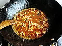 炒锅放油烧热,加三勺豆瓣酱,炒热。放入生姜,爆香。然后倒煮菜水(约一斤),最后把肉片倒入煮熟加入适量盐,白糖~
