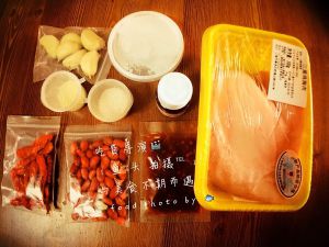 鸡胸肉改刀 切一公分见方的鸡丁 手指盖大小就可以