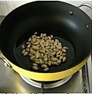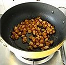 冷锅冷油将花生米放入,中火加热,用锅铲不断翻炒,待花生表面稍微变黄,关火捞出滤油冷却;