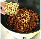之后倒入芡汁翻炒,收汁后关火将熟花 生米倒入即可