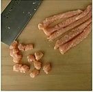 两面排斩后切成1厘米见方的肉丁;