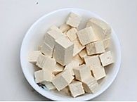 先把豆腐切成2厘米见方的丁。
