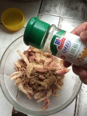 6、外撒香菇丁,生抽、料酒、味极鲜、油、13香、胡椒粉等配料。