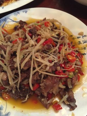 最后放入切好的子姜丝,放入一点点白糖,鸡精,几滴醋,起锅