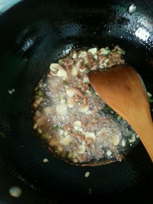 热油爆香姜葱蒜末,