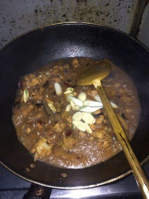大火煮沸,然后放之前留的葱和蒜,继续炖,加醋