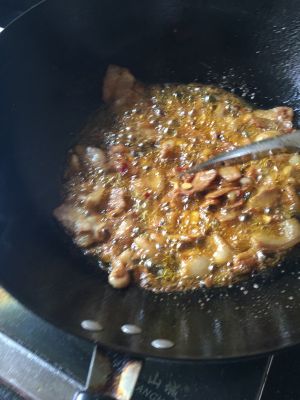 重新起锅,加油和花椒,然后加豆瓣酱翻炒