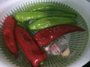 清洗干净所有材料,青红椒去头去籽,愛怎么砌随个人喜好,大蒜去衣