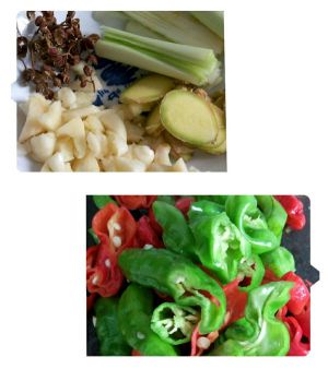 葱姜蒜,辣椒,花椒准备
