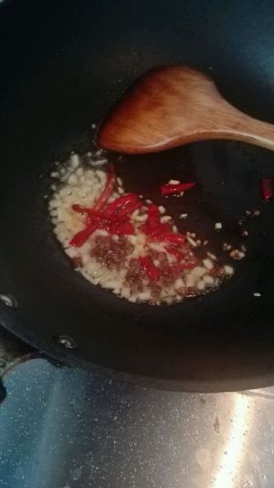 锅里留少量油,下入姜蒜,花椒,辣椒爆香
