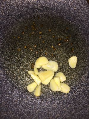 大蒜放进锅里多炒一会儿,因为最后也会很好吃