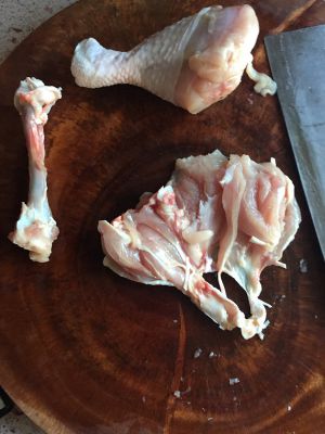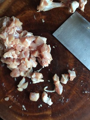 鸡腿剃掉骨头,刀工什么都不重要,关键是耐心,自行百度下,方法很多 切成小肉丁