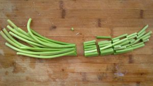最后,加入青蒜,鸡精,盐调味就可以出锅了。