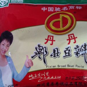 郫县豆瓣置于碗中,加入两倍于郫县豆瓣的清水,搅匀,备用