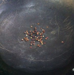 将锅烧热,放入花椒粒,根据对麻的口味的轻重来决定量的多少