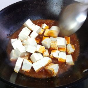 放入豆腐,转锅,但不可用铲子翻动,豆腐容易碎
