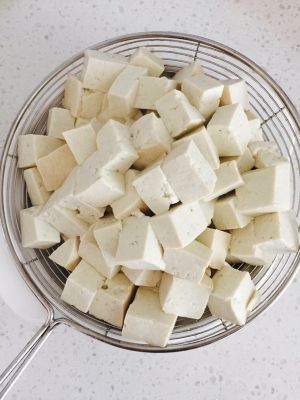 准备好食材。(豆腐切方块)