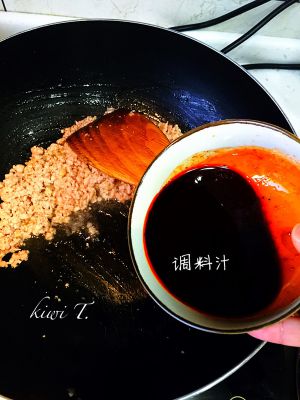 翻炒至猪肉末变色加调料汁。