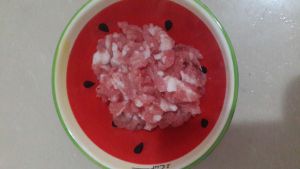五花肉用刀或者绞肉机剁成碎末,尽量剁细碎,加入少许盐剁匀