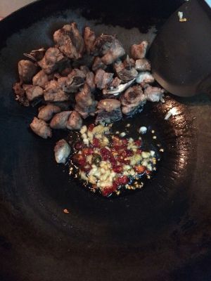 放入姜蒜末辣椒八角,爆香