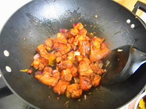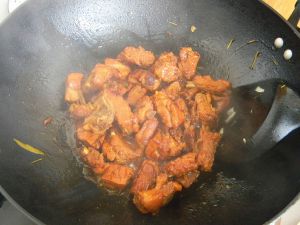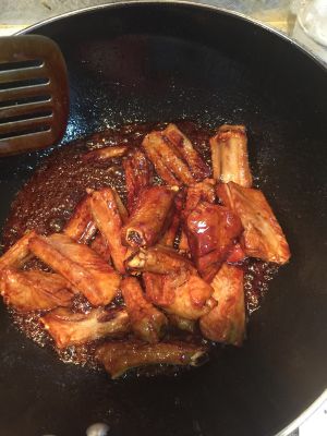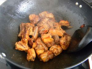加红烧汁或红烧酱油,然后翻炒均匀,使排骨着色