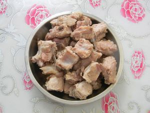 排骨用水焯下沥干水胡萝卜切成小块。