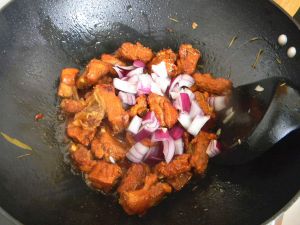 放入排骨,改大火翻炒