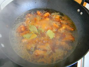 加水,没过排骨,盖锅盖小火收汁,当汤汁还剩下1/3的时候开盖转中小火继续收汁