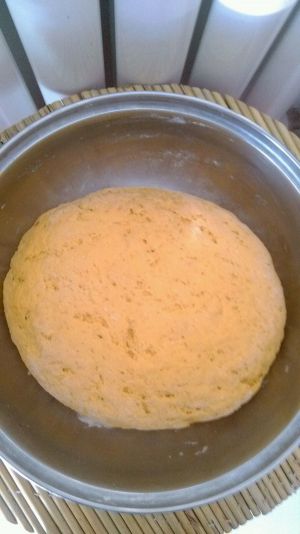 自发粉加适量水,我习惯把水龙头打开最小,拿筷子朝一个方向一直搅拌,谨慎放水,基本上用不了多少水的。揉面,揉到没有面疙瘩,很光滑就行了,通常我会放到碗里,然后把碗放到锅里盖上盖子,锅里可以适当放一点水,保持湿润。春秋季节的室温发大概一个多小时就可以了,如果比较着急,锅里放温热的水,不要太热,那样底下那层面就容易熟了,而且酵母里面的活性成分在40度以上就死掉了