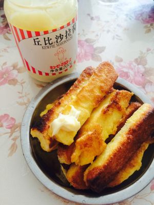 就拍照的功夫,手慢,没翻面,都有些糊了!不过味道还是蛮好的,个人喜欢沙拉酱口味,也可以尝试放一些番茄酱。