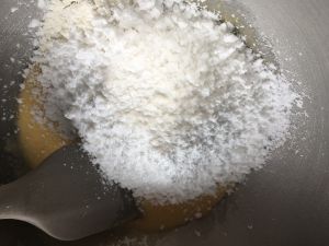 奶粉、白糖、玉米油、鸡蛋搅拌均匀。